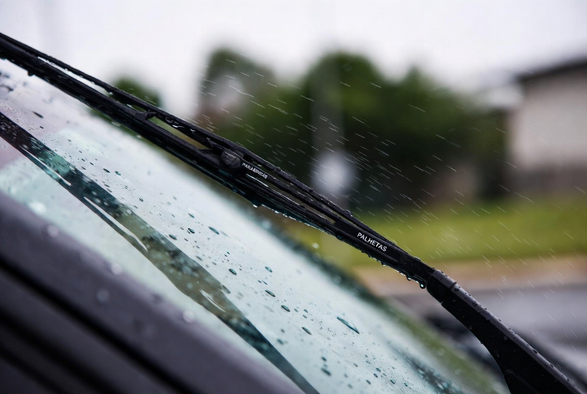Palhetas automotivas para melhor visibilidade em dias de chuva e revisão do sistema de limpeza do para-brisa.